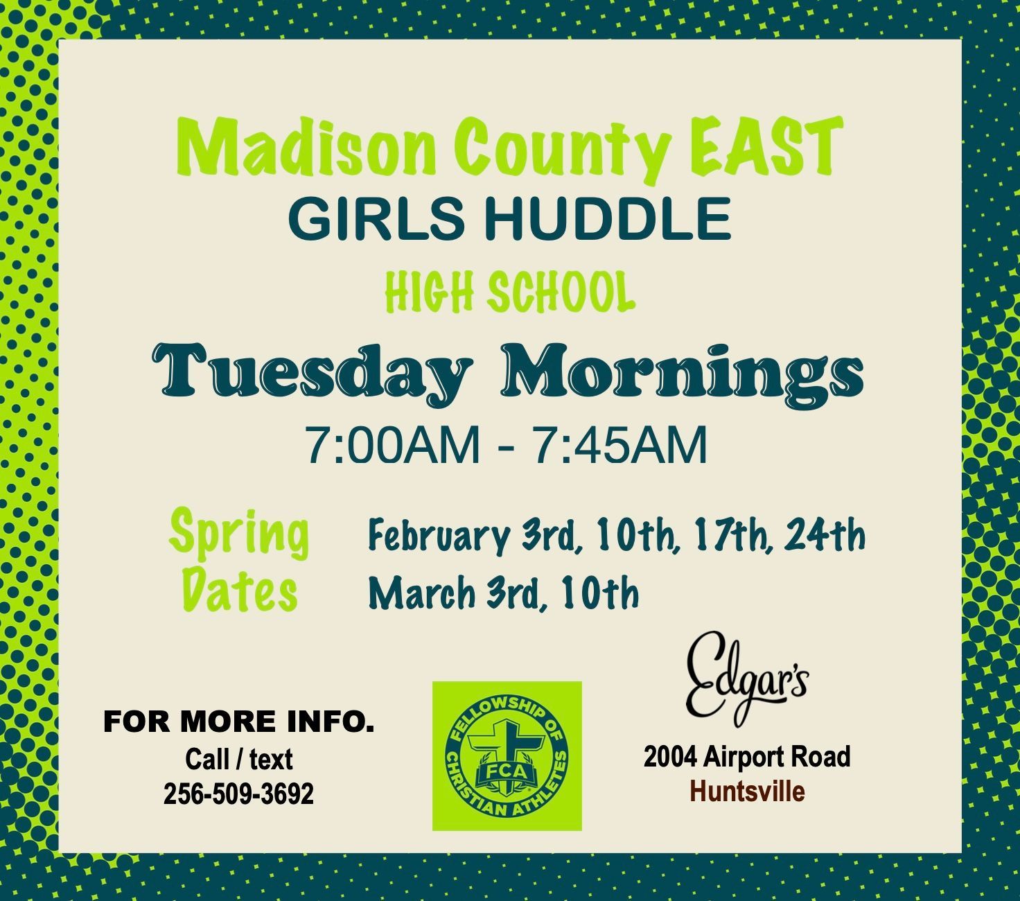 To learn more, contact the NE AL FCA office or visit FCA's CAMPUS 101.